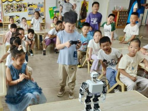 在平原县,宣讲团走进开发区,了解产业布局与城市书房建设,并与团县委座谈交流,为后续在科普教育、志愿服务等领域合作奠定基础。在龙门街道莲花池社区暑托班,宣讲员通过讲述感人故事诠释“两弹一星”精神,随后开展的剪纸活动与智能机器人展示,将科技与红色传承巧妙融合。在红缨幼儿园,宣讲员以独特方式讲解科学家故事与科学原理,队员们带领孩子们捏制“两弹一星”,并通过机器人互动让孩子们感受科技魅力。