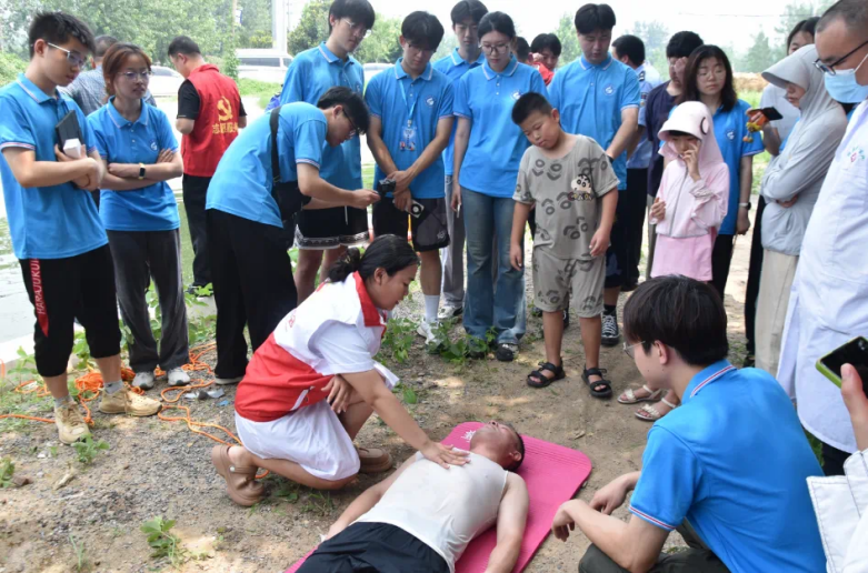 8 月6日上午,“泉音嵙韵”实践团在归昌乡开展防溺水演练活动。团队成员系统学习了野外水域的安全隐患、溺水事故的高发地点与人群、溺水者的生理变化等理论知识,并重点掌握了救生圈、绳索等救援工具的正确使用方法以及“智慧救援”四步法(呼救、抛物、拉拽、报警)。在实战操作环节,成员们通过模拟溺水救援,总结了救生圈投掷角度调整、岸边拖拽时降低重心避免被拖拽等实操经验。上岸急救部分,归昌乡卫生院护士详细演示了判断意识、清除口鼻杂物、头偏向一侧按压腹部排水以及心肺复苏(30 次按压 + 2 次人工呼吸循环)等急救步骤。演练结束后,团队结合经验教训,完善了防溺水知识普及方案,计划通过入户宣讲、发放手册等形式,向周边村落村民传递安全知识,提升其自救互救能力。