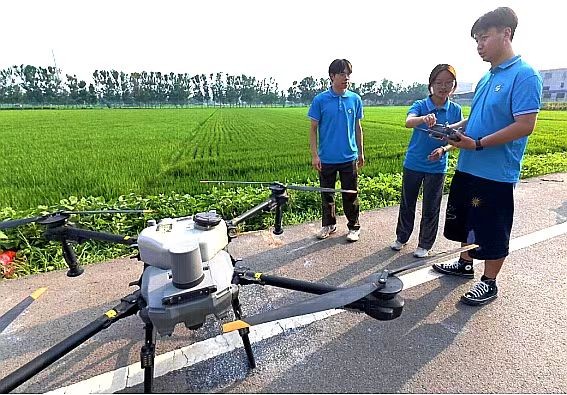 与此同时,山东科技大学“泉音嵙韵”留学报国社会实践团在郯城县归昌乡开展“科技助农”活动。在团队负责人与村县党委团委的统筹协调下,王雅楠、刘昱彤、李敏等同学充分发挥专业优势,运用大疆 T100 农业无人机,顺利完成了无人机吊运、植保助农、农药喷洒等一系列助农服务。团队成员结合专业知识,为当地村委和农业局提供相关建议,成功将低空经济与农业技术相结合,提升了农业生产效率,得到了当地农户的一致认可。
