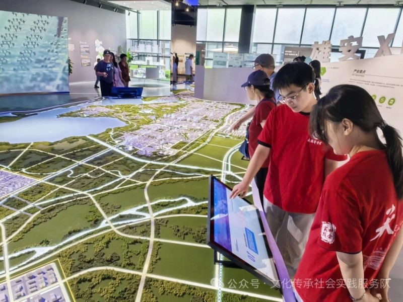 7月19日,雄安新区分队穿梭于未来之城的智慧展厅与社区街巷。队员们踏入雄安新区印象馆,跟随着讲解员的步伐,聆听雄安新区从一片荒芜到如今繁华的蜕变历程。印象馆内的沙盘模型、多媒体展示、珍贵照片等,全方位展现了雄安新区的诞生背景、宏伟规划以及每一阶段的关键成就。当看到新区的交通网络从几近空白到如今四通八达,队员们对雄安新区的规划布局有了更加清晰认识,进一步理解了雄安新区在京津冀协同发展战略中的重要作用。