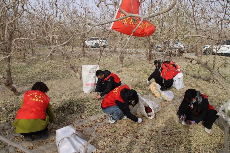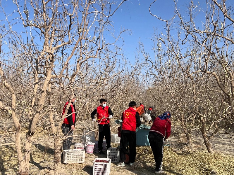 同样在吾塔木乡新时代文明实践所集结党员先锋队、青年突击队、巾帼志愿队及退役军人志愿服务队等40余名志愿者,奔赴尤勒滚艾日克村农户麦力干木·吐尔迪的红枣园。经过一下午的辛勤劳作,地头堆起的红枣如“小红山”般见证了党建服务的实效。