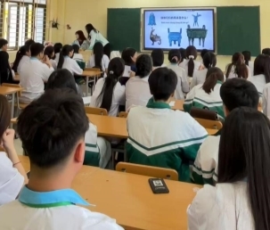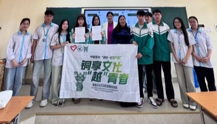 近日,铜享文化“越”青春志愿服务团队在越南海河高级中学(Trường THPT Hải Hà)开展文化交流志愿服务活动。在桂林理工大学留学的越南籍大学生青年志愿者丁式越河、武琼书同学为该校11年级学生讲授青铜器文化课程,通过PPT讲解、手工互动体验等形式,向越南青少年介绍中国古代青铜文明,探寻中越青铜文化的内在联系。