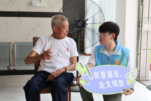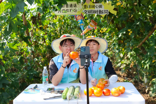 实践团将语言推广与产业发展紧密结合,探索出一条“语言+产业”的乡村振兴新路径。在垂钓基地,成员们调研语言服务对产业发展的影响;在蔬菜园搭建田间直播间,用标准普通话为农产品拓展销售渠道;联合红十字会开展双语应急救援培训,提升村民安全意识和应急能力;走进康养院,通过语言互动帮助老人跨越数字鸿沟。以普通话成为连接产业发展与民生安全的纽带,为乡村经济与民生改善注入动力。