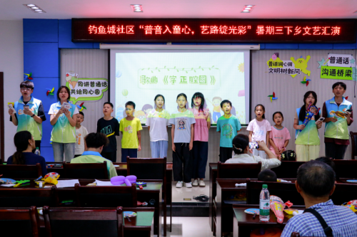 活动收官之际,一场别开生面的文艺汇演在钓鱼城社区新时代文明实践站举行。汇演通过歌曲、手势舞、演讲、急救演示等丰富多彩的形式,生动展现了普通话推广与乡村文化融合的成果。村民们纷纷表示,普通话不仅是沟通工具,更是连接外界的桥梁,为乡村发展注入新活力。