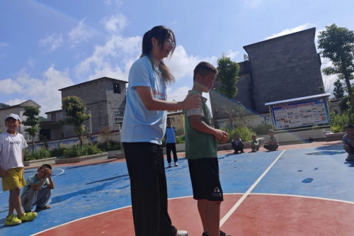 7月9日上午,实践队抵达越西县瓦岩乡中心小学。见面后,队员们以欢快的游戏叩开孩子们的心扉,笑声如清泉流淌,在阳光洒落的操场上荡漾。他们寓教于乐,在跳跃与奔跑间播撒科学运动的种子,让健康的理念悄然生根。