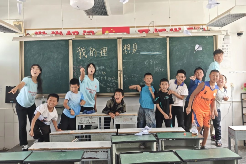 实践队开展”我的理想”主题活动,孩子们在队员的引导下将梦想写在纸飞机上,许下”飞出大山、逐梦蓝天”的期望。