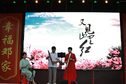 晚会伊始,在实践团主持人热情洋溢的声音中,演出活动正式开始,那象征着根植于楠木村的文化自信与实现乡村振兴的共同追求由此升腾。