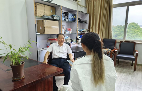 (图为6月30日垛田青耘实践团队成员潘婧雯采访景区负责人晏中和先生。孙嘉欣供图)