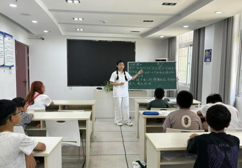 寓教育于文化活动之中,丰富课程内容和形式,加快形成“课堂+课外”新模式,针对学生的学习状况和性格特点制定个性化辅导方案,在暑期辅导孩子写作业的同时,不断开设剪纸、绘画等多门课程。